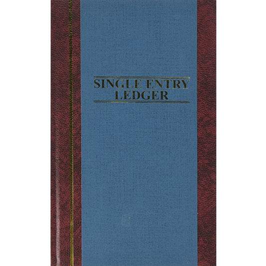 Single-entry ledger book contains 150 numbered pages with 33 lines per page. Included A-Z index can be used to record names, companies and other references. Design features a hardbound blue cover with brown trim and gold foil stamping. Regular-paged, white writing paper is printed in blue and red ink. Features 150 numbered pages with 33 lines per page Single-entry ledger ruling with no units; Each...Regular price $42.42Regular priceUnit price / perSale price $42.42 -