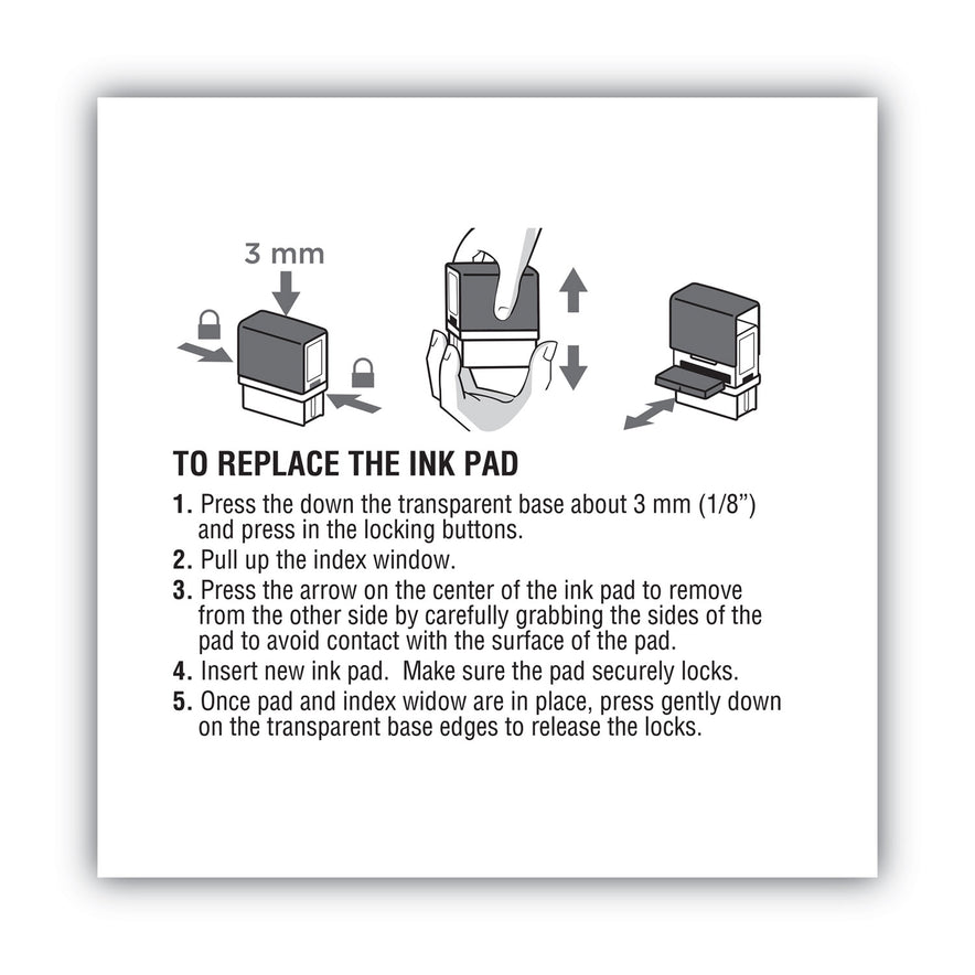 Changing ink pads is easy with this snap in, snap out cartridge style. Delivers up to 5,000 impressions. Stamp Pads Type: Inked Replacement; Ink Pad Type: Cartridge; Refill(s) For: 2000 PLUS 1SI40PGL, 1SI40P; Ink Color(s): Red.