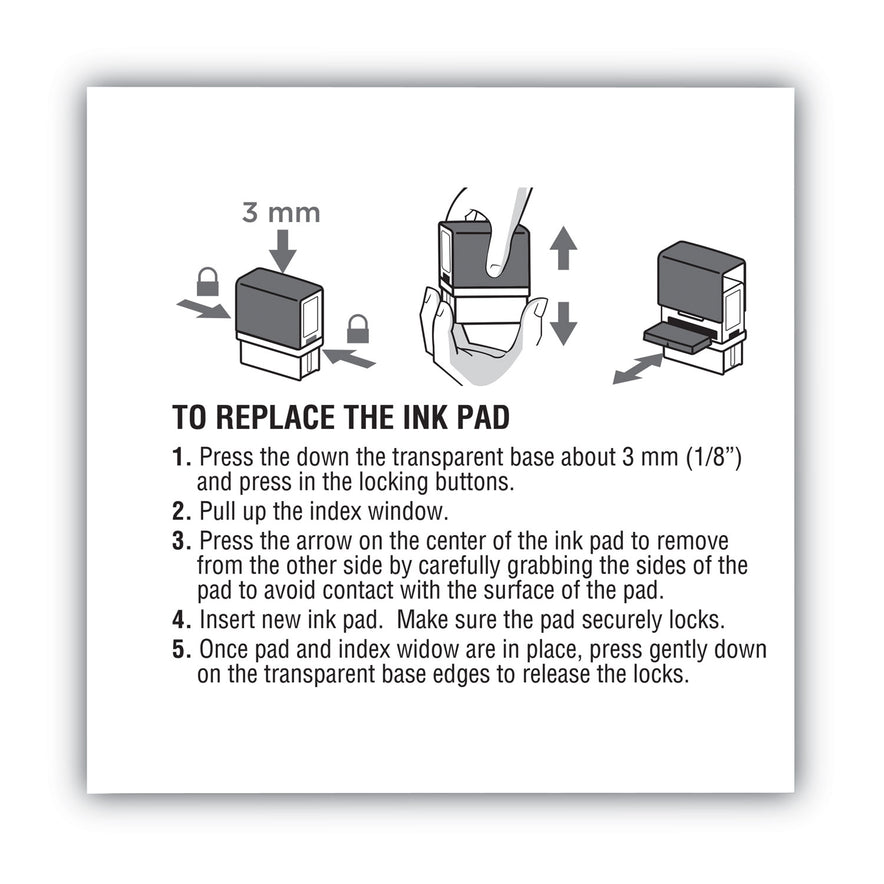 Changing ink pads is easy with this snap in, snap out cartridge style. Delivers up to 5,000 impressions. Stamp Pads Type: Inked Replacement; Ink Pad Type: Cartridge; Refill(s) For: 2000 PLUS 1SI60P; Ink Color(s): Blue.