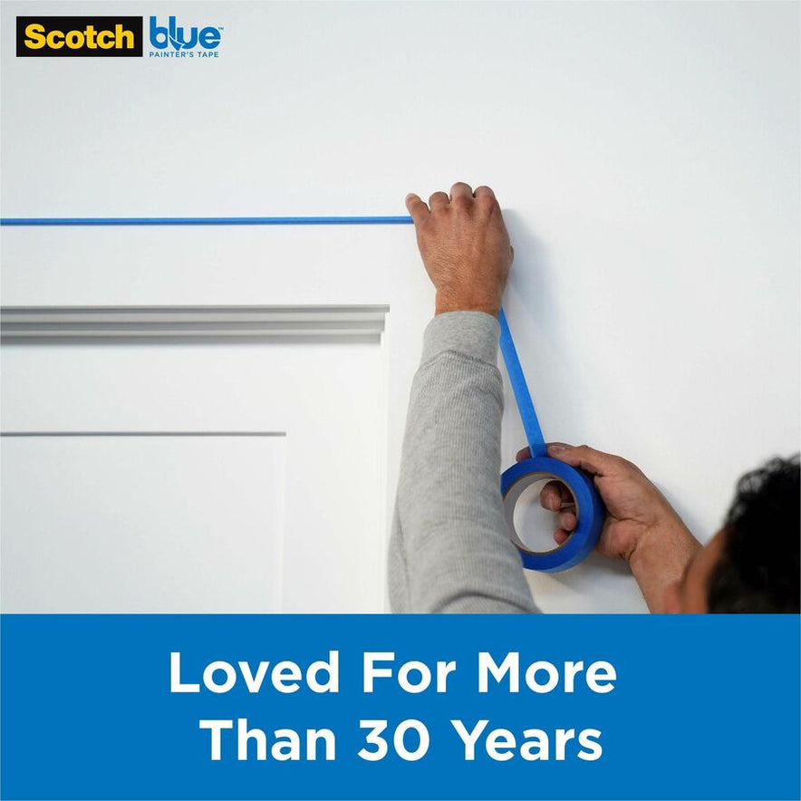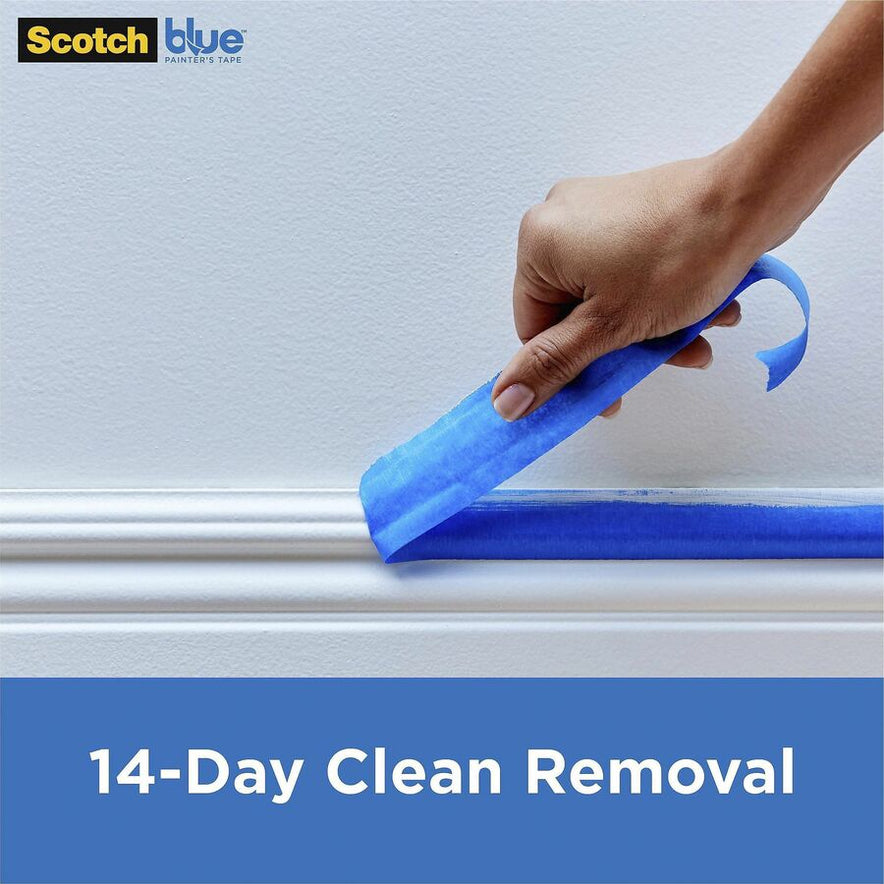 ScotchBlue Painter's Tape Original Multi-Surface removes cleanly for up to 14 days and does not cause surface damage, even when exposed to direct sunlight. The medium-adhesion tape delivers sharp paint lines and can be used on a variety of surfaces, such as walls, trim, glass and metal. It easily conforms and sticks to the surface with consistent surface contact and secure holding power. The adhesive-transfer resistance from the acrylic adhesive, increased light and ultraviolet stability mean the tape stays intact when removed to reduce labor and rework. Solvent-resistance and moisture-resistance resist paint bleed-through, and adhesive doesn't soften or transfer when tape is wet. The tape is easy to tear and use with a smooth unwind.