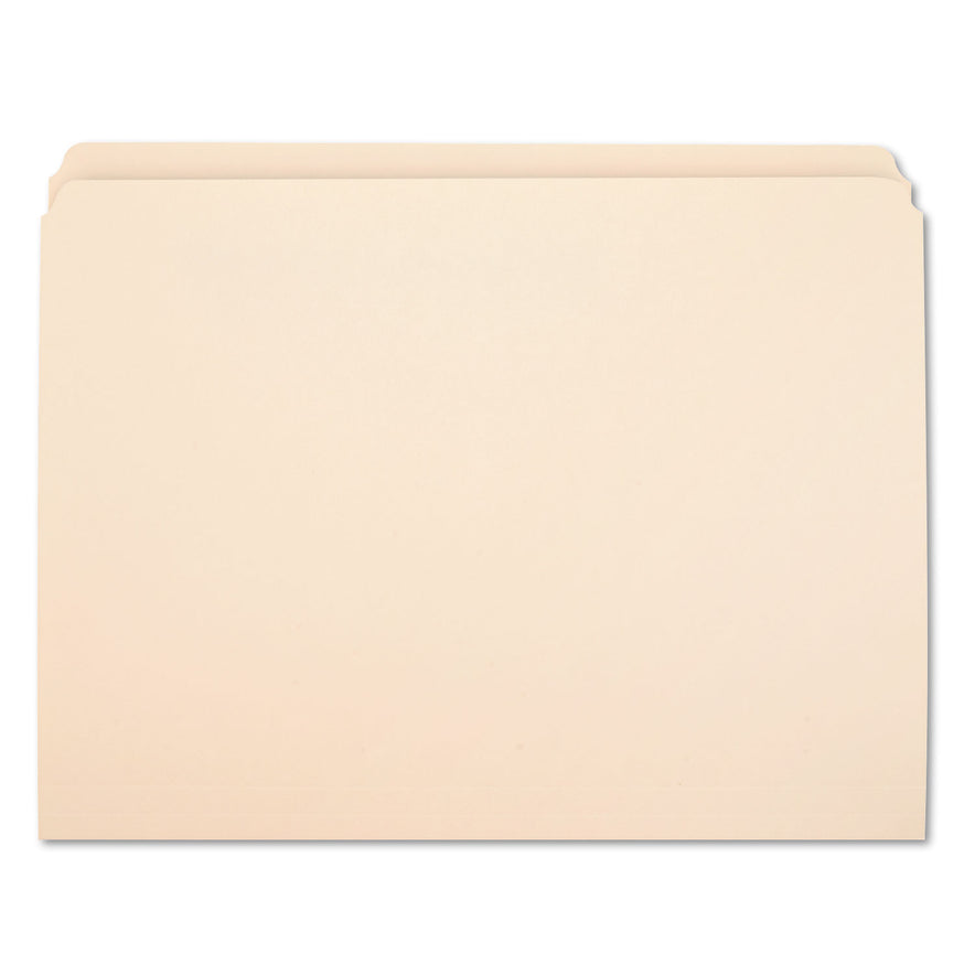 Manila file folders are constructed of durable 11 pt. paper stock. The bottom is scored for 3/4" expansion. A variety of top tab positions fit any vertical or lateral filing system. Ideal for everyday filing needs. File Folder Size Type: Letter; File Folder Color: Manila; Color Family: Manila; File Folder Material: 11-pt Manila.