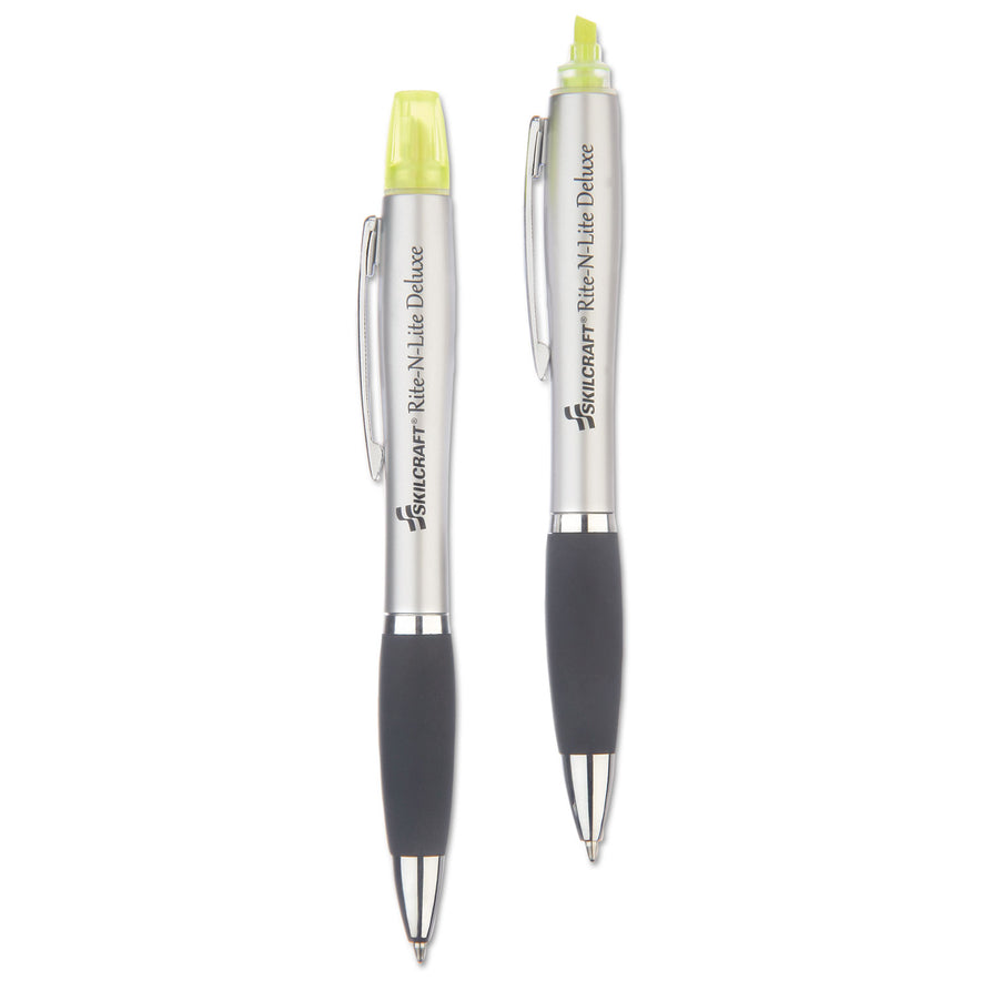 AbilityOne 7520016205405, SKILCRAFT Rite-N-Lite Deluxe, Fluorescent Yellow/Black Ink, Chisel/Conical Tips, Silver/Black Barrel, 2/Pack