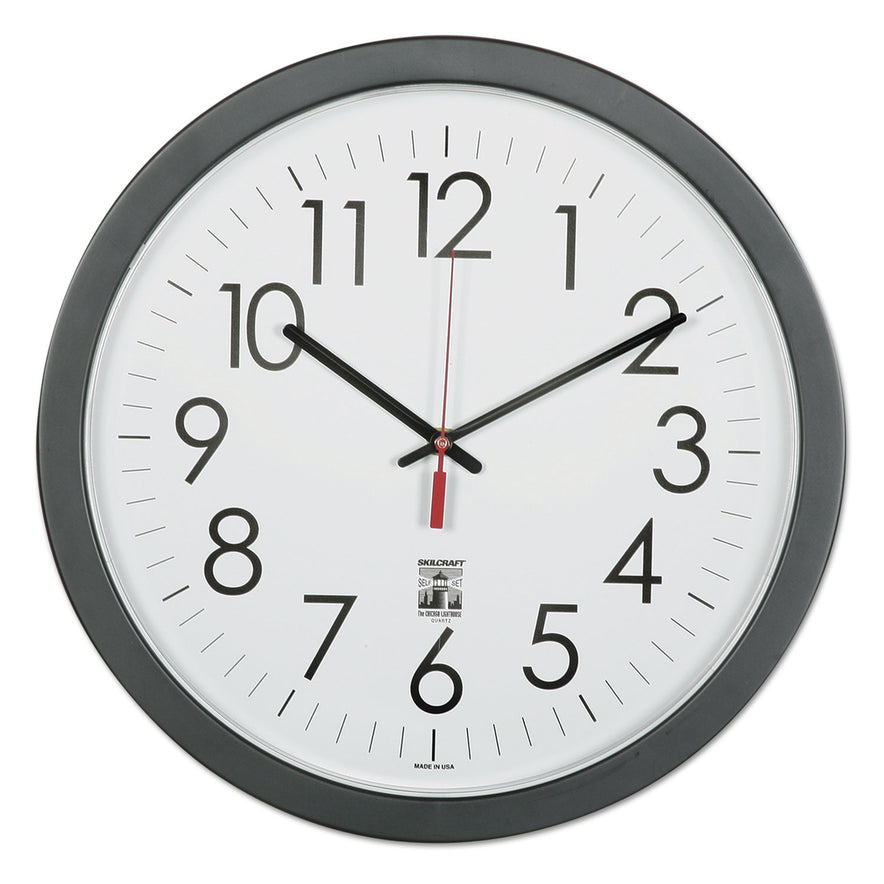 AbilityOne 6645016238823 SKILCRAFT Self-Set Wall Clock, 14.5" Overall Diameter, Black Case, 1 AA (sold separately)