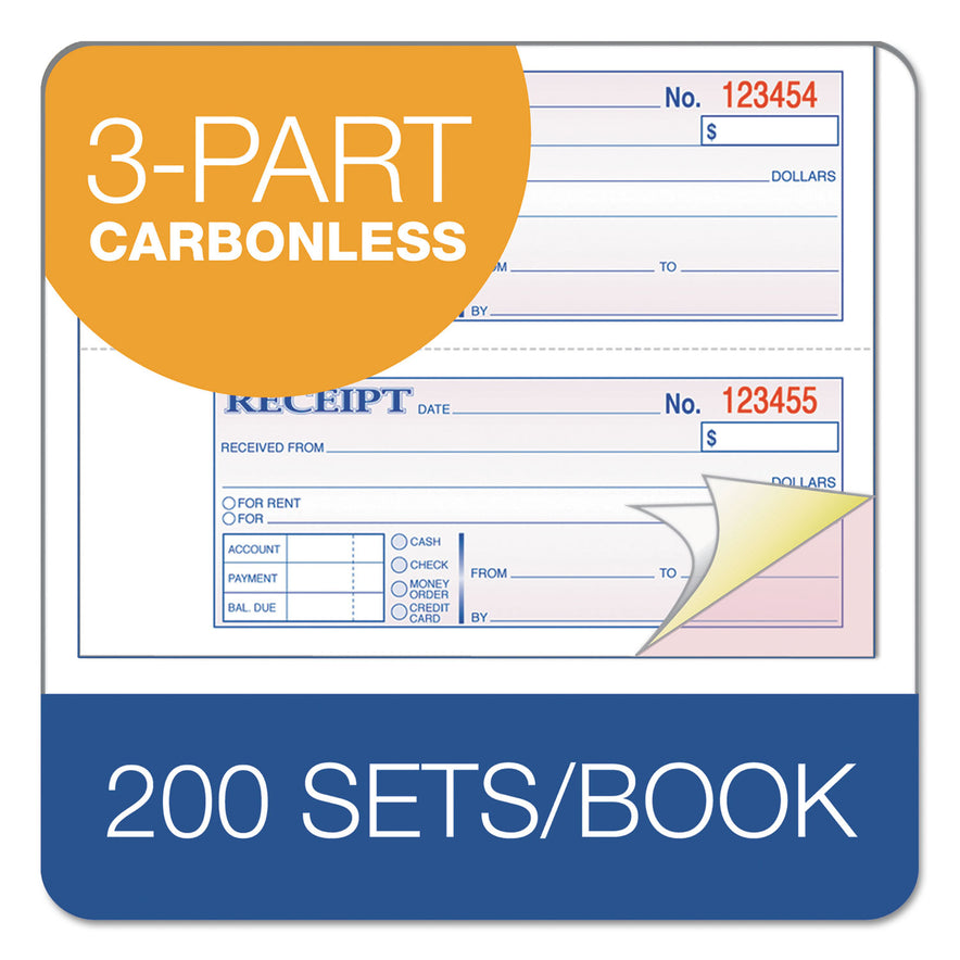 Adams TOPS 3-Part Hardbound Receipt Book, Three-Part Carbonless, 7 x 2.75, 4 Forms/Sheet, 200 Forms Total (TCH1185)