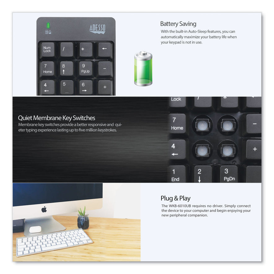 Adesso WKB6010UB Wireless 18-Key Numeric USB Keypad, Black