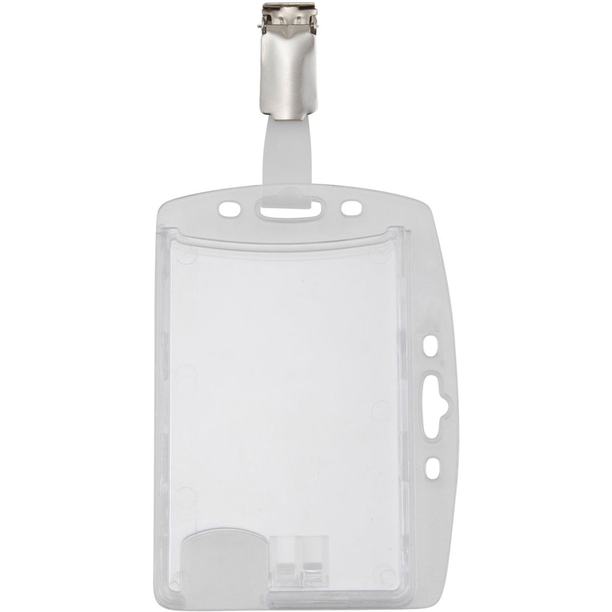 Plastic Card Holders keep valuable, high-tech security cards safe, clean and secure. Holder is ideal for ID cards and name badges. Rotating badge clip accommodates vertical and horizontal card orientations. Rigid material protects enclosed cards and thumb notch allows easy removal from either side.