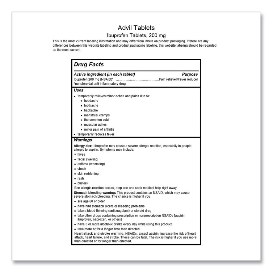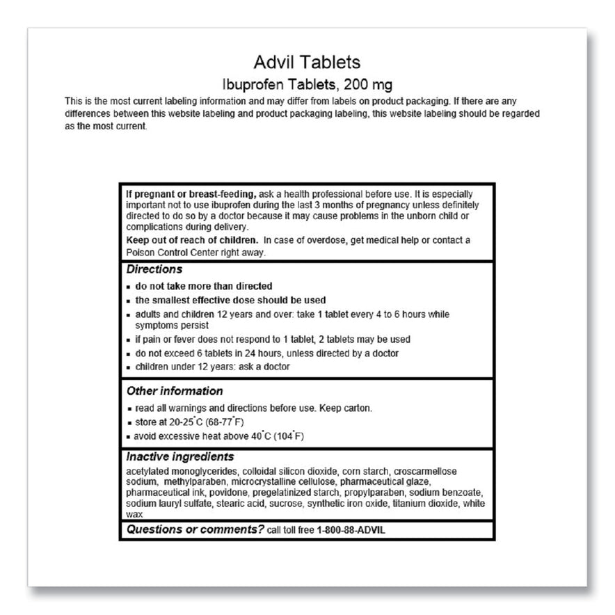Advil Ibuprofen Tablets, 200mg, Refill Pack, Two Tablets/Packet, 30 Packets/Box (58030)