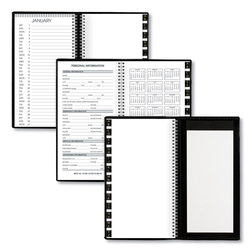 A tabbed telephone/address book pages and a memo pad are included for all your contacts and additional notes.