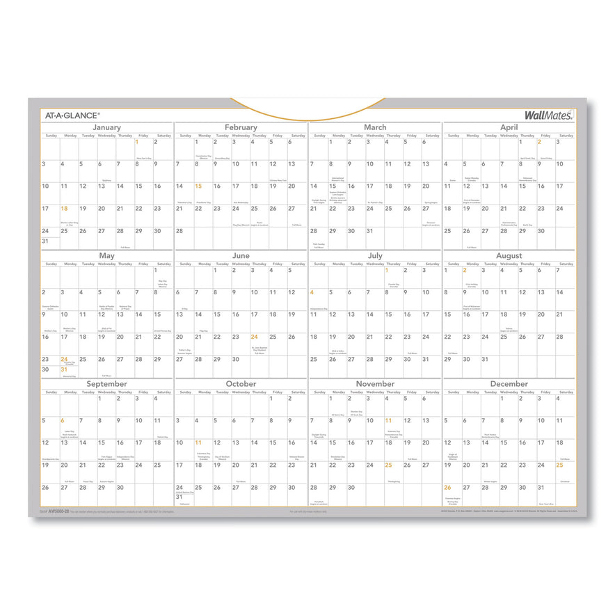 AT-A-GLANCE WallMates Self-Adhesive Dry Erase Yearly Planning Surfaces, 24 x 18, White/Gray/Orange Sheets, 12-Month (Jan to Dec): 2025 (AW506028)
