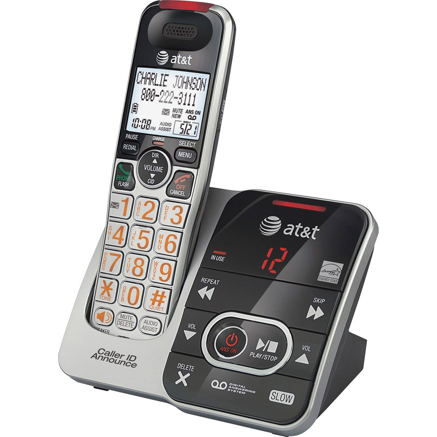 Cordless answering system features Caller ID and Caller ID Announce to make screening calls that much easier. Audio Assist temporarily increases overall volume and enhances sound frequencies that make speech easier to understand. Extra-large display allows easy viewing at a glance. The easy-to-read LCD on the handset features high-contrast black text on a white background to read incoming Caller ID or review Call History easily. Expand phone system up to 12 handsets. Cordless phone also offers DECT 6.0 technology, handset speakerphone, HD audio, visual ringer, quiet mode to silence the ringers, talking digits, 50-name/number phonebook, intercom between handset and base unit, conference between an outside line and up to four handsets, message waiting indicator, English/Spanish/French setup menu, 14 minutes of digital recording time, message time/date stamp and last 10-number redial. Phone is wall-mountable.