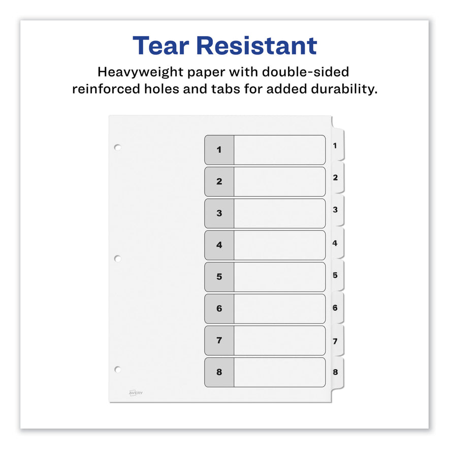 Avery Customizable TOC Ready Index Black and White Dividers, 8-Tab, 1 to 8, 11 x 8.5, 1 Set (11132)