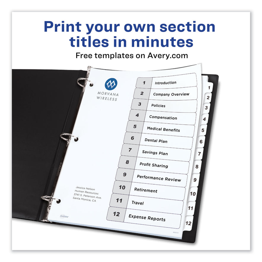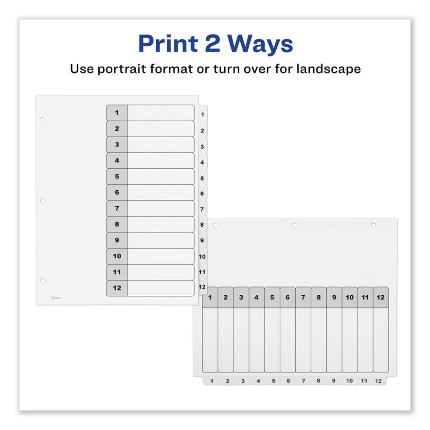 Avery Customizable TOC Ready Index Black and White Dividers, 12-Tab, 1 to 12, 11 x 8.5, 1 Set (11140)