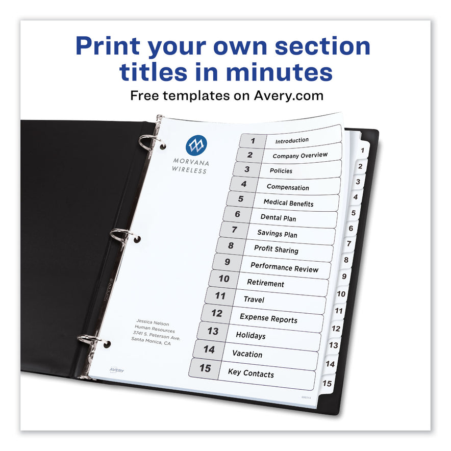 Avery Customizable TOC Ready Index Black and White Dividers, 15-Tab, 1 to 15, 11 x 8.5, 1 Set (11142)