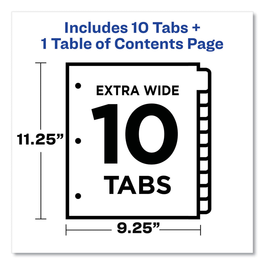 Avery Customizable TOC Ready Index Multicolor Tab Dividers, Extra Wide Tabs, 10-Tab, 1 to 10, 11 x 9.25, White, 1 Set (11165)