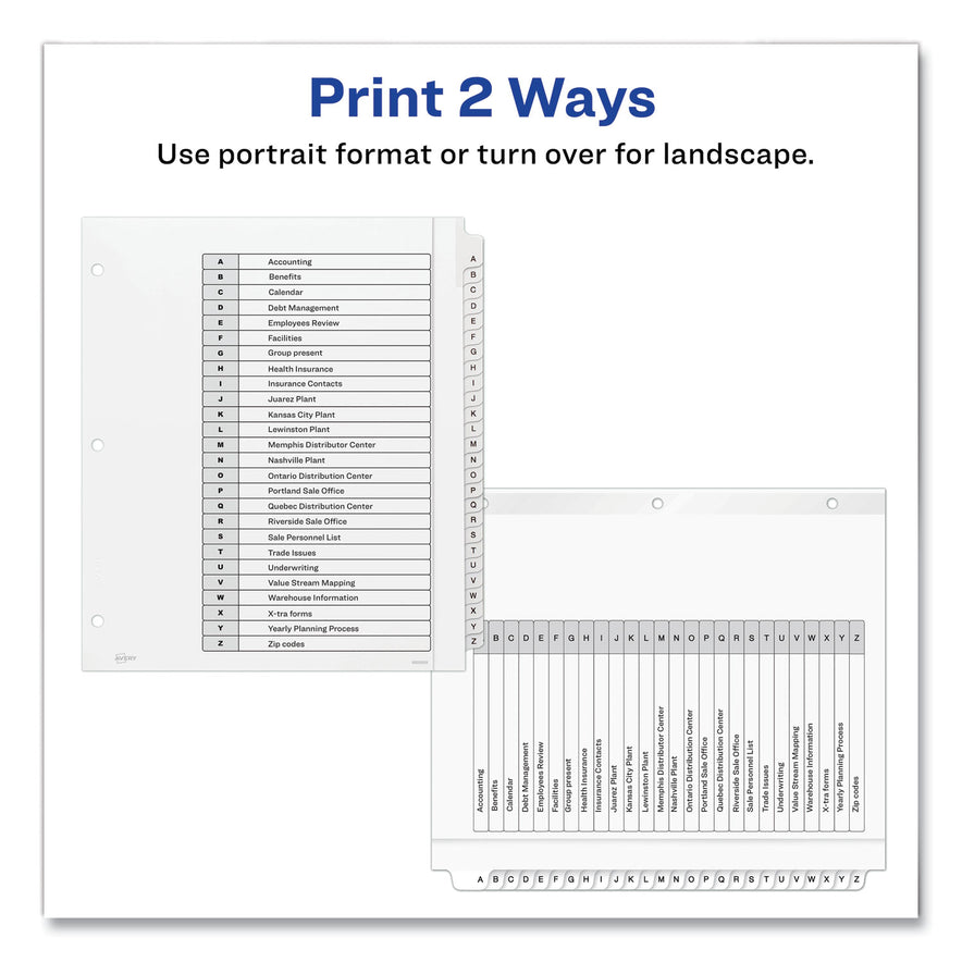 Avery Customizable TOC Ready Index Black and White Dividers, 26-Tab, A to Z, 11 x 9.25, 1 Set (11166)