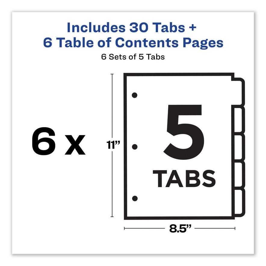 Avery Customizable TOC Ready Index Multicolor Tab Dividers, 5-Tab, 1 to 5, 11 x 8.5, White, Traditional Color Tabs, 6 Sets (11187)