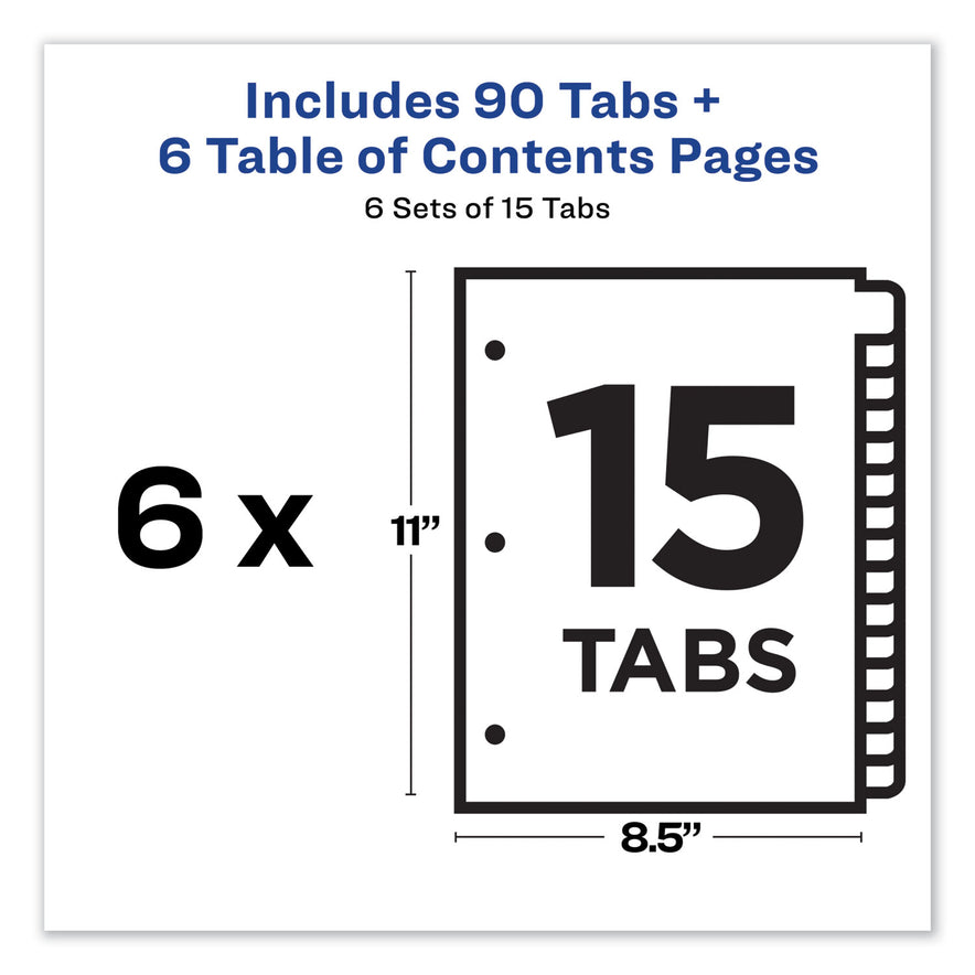 Avery Customizable TOC Ready Index Multicolor Tab Dividers, 15-Tab, 1 to 15, 11 x 8.5, White, Traditional Color Tabs, 6 Sets (11197)