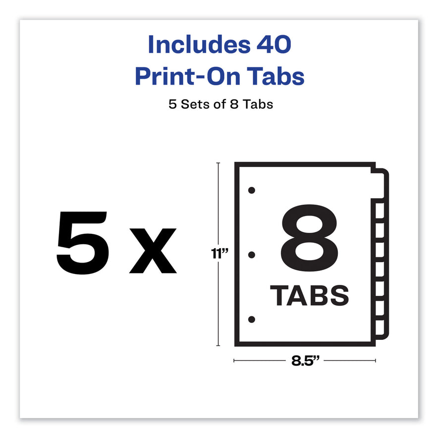 Avery Customizable Print-On Dividers, 3-Hole Punched, 8-Tab, 11 x 8.5, White, 5 Sets (11552)