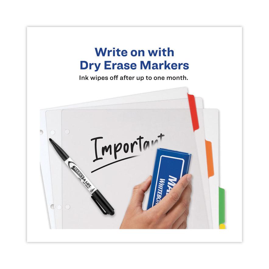Write on the plastic tabbed divider and sheet protector with Avery dry erase marker ink that can erase after up to a month.