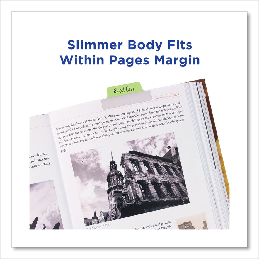 Margin TabsWide, slim-body, 2.5" x 1" tabs fit on the margins of pages without obscuring text.
