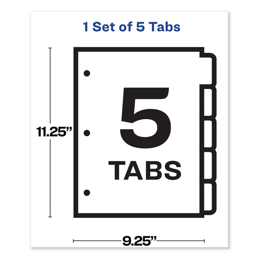 Avery Print and Apply Index Maker Clear Label Sheet Protector Dividers with White Tabs, 5-Tab, 11 x 8.5, White, 1 Set (75500)