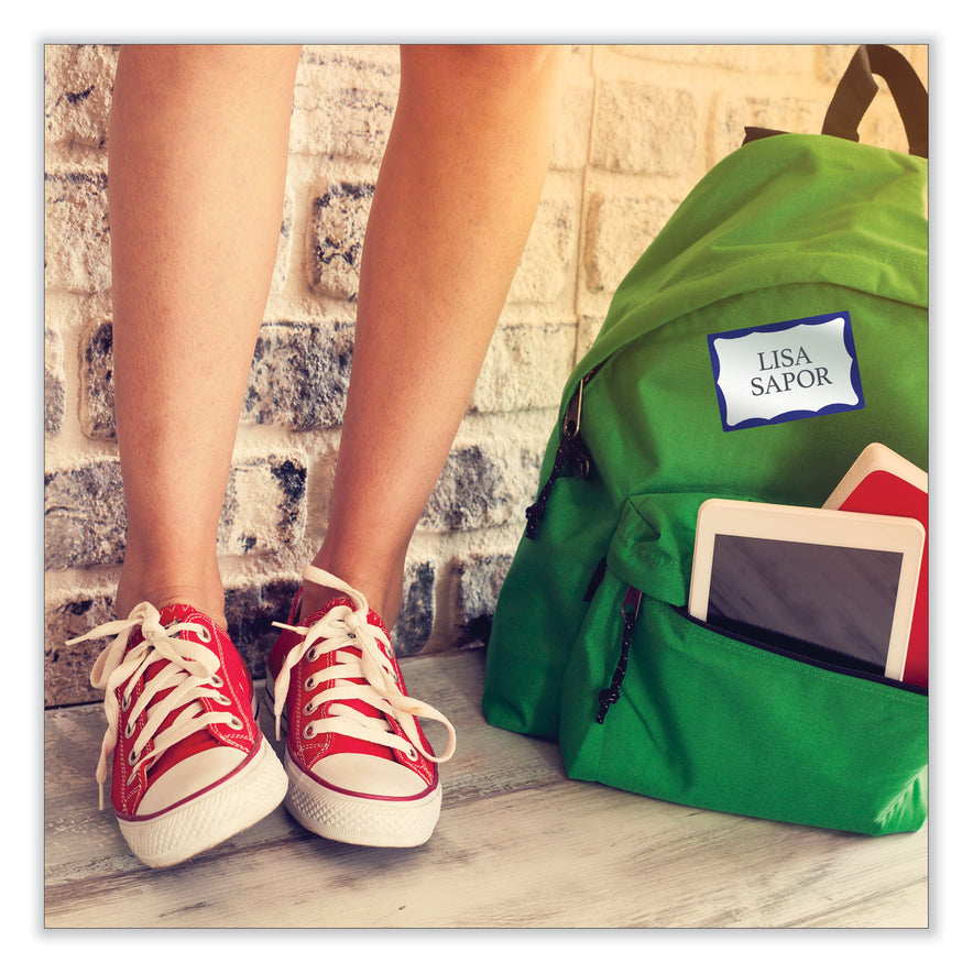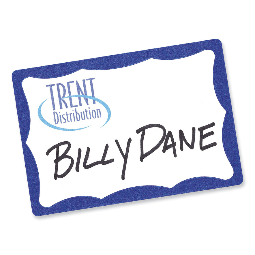 Choose from a variety of badge styles: "Hello", plain or border-style. These versatile name badge labels let you add graphics, handwrite names or both. Easy-to-use Avery Design & Print templates help you create professional-looking badges for identifying everyone at meetings and conferences. You can add a company logo at the top or a specialized greeting. Handwrite or print 4" x 6" with a laser or inkjet printer. How these name badge labels look is up to you. Border-Style. Orientation: Horizontal; Name Badge Label Length: 2.33"; Name Badge Label Width: 3.38"; Name Badge Label Color(s): White/Blue. 18 Pack