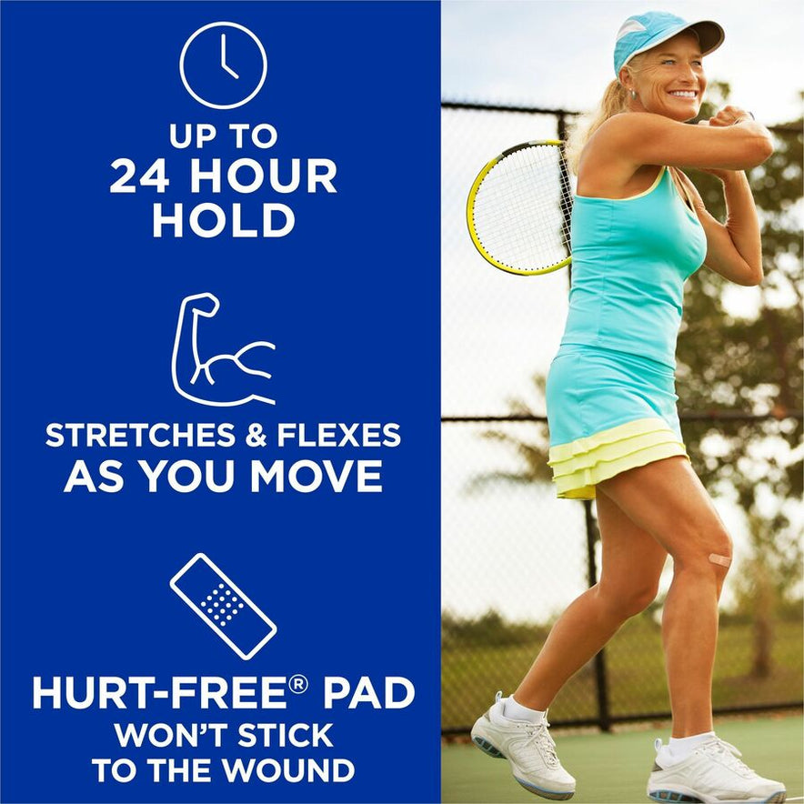 Try Band-Aid Brand Flexible Fabric Adhesive Bandages to cover and protect minor wounds, cuts, scrapes and minor burns. Made with Memory Weave fabric for comfort and flexibility, these first-aid wound care bandages stretch and flex as you move. Each fabric bandage features a Quilt-Aid Comfort Pad designed to cushion painful wounds while you heal which may help to prevent re-injury. Made with a Hurt-Free Pad, these comfortable bandages won't stick to the wound as they wick away blood and fluids for gentle removal. From a doctor-recommended bandage brand, Band-Aid Brand Adhesive Bandages help protect against dirt and germs that may cause infection, making them a great addition to a first aid kit or wound care supplies. Plus, wounds covered with a bandage heal faster than uncovered wounds. For proper wound care, treat wound with an antiseptic ointment such as Neosporin before application.
