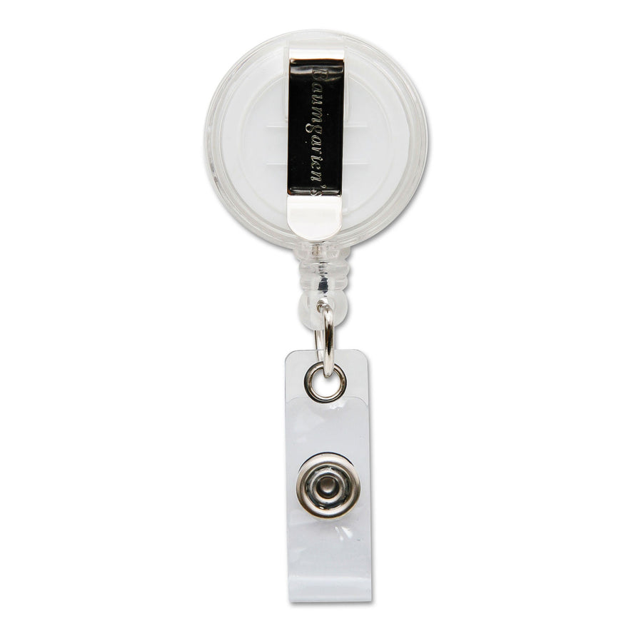 These compact, round, plastic card reels connects easily to your ID or security badge holder for convenient displaying. Slide-style clip attaches to a belt, pocket or purse; ensures that your ID card stays securely with you at all times. Extends 30 inches when needed to display ID or access security panel and retracts automatically. Cord Material(s): Nylon; Cord Length: 30"; Reel Frame Material(s): Plastic; Color(s): Assorted.