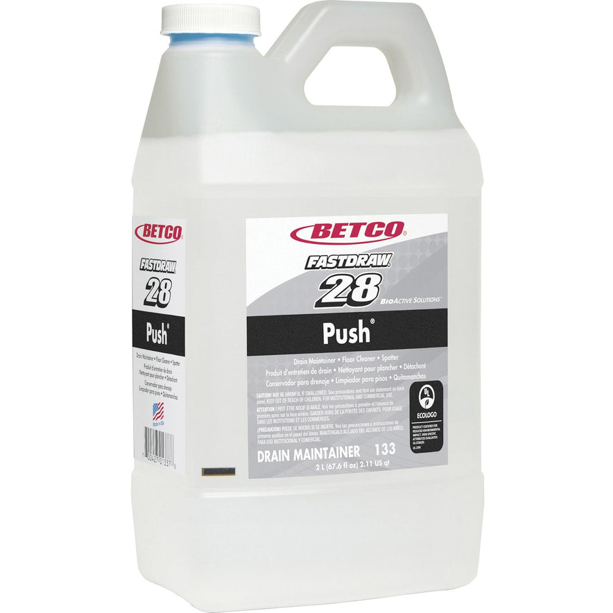 Use Bioactive Solutions Push as a drain maintainer, floor cleaner and spotter. Use in grease traps, septic tanks, drain lines, down pipes, carpet odors and restroom floors. This stable liquid suspension of cultured bacteria and malodor counteractants is capable of digesting complex proteins, starches, fats, oils and greases, paper, vegetable gums, hair and other organic waste. The enzyme-producing bacteria is more economical and efficient than using massive doses of enzymes alone to degrade waste and eliminate the source of odors. Bioactive Solutions Push is noncorrosive, nonflammable, nonacid and noncaustic. As part of the FastDraw system, it is numbered (FastDraw 28) and color-coded to eliminate misuse. Spill-proof bottle helps prevent chemical contact with the cleaning staff. Patented technology uses two metering tips for low-flow and high-flow dilution. Curved siphon tubes on the FastDraw Dispensers (not included) allow complete product evacuation, eliminating waste.