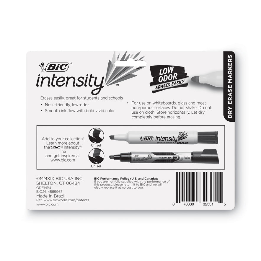 BIC Intensity Bold Tank-Style Dry Erase Marker, Extra-Broad Bullet Tip, Assorted Colors, 4/Set (GDEMP41ASST)