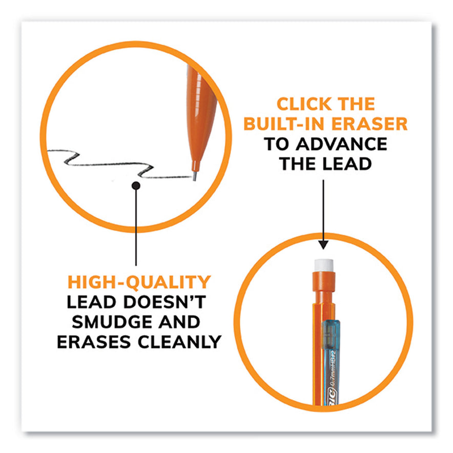 Experience smooth, dark writing with the BIC Xtra-Smooth Bright Edition No. 2 mechanical pencils with erasers. These 0.7 mm mechanical pencils have a medium point that's perfect for a variety of everyday writing activities. The high-quality lead doesn't smudge and erases cleanly, so your work looks professional and neat. Always ready, the BIC Xtra-Smooth Bright Edition No. 2 pencils are convenient, reliable, and never need sharpeningsimply click the built-in eraser to advance the lead. They're the perfect mechanical pencils for school and come equipped with three pieces of No. 2 lead that's compatible with most standardized tests. With a colorful translucent barrel, these mechanical pencils have a sophisticated, modern look, and their colorful clips easily attach to pockets, notebooks, and more. Retractable (Yes/No): Yes; Eraser (Yes/No): Yes; Graphite Color(s): Black; Color Family: Black.