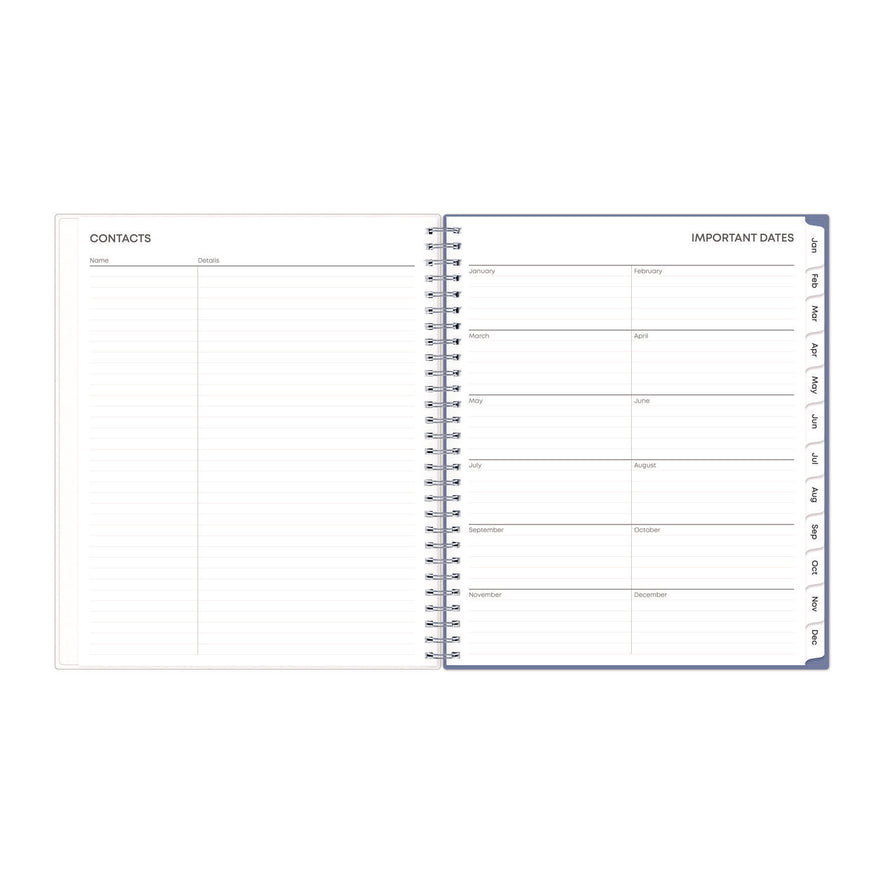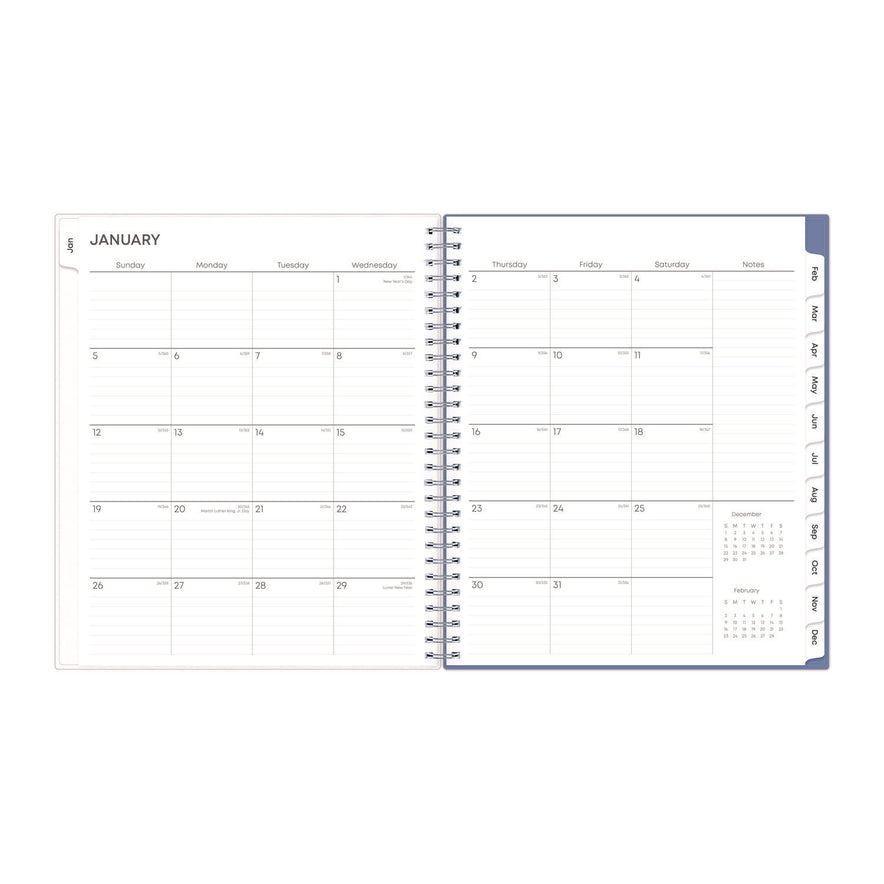 Add a touch of style to getting organized. Durable coated monthly calendar tabs allow for easy access to your month views while the two-page layout offers plenty of writing space for detailed scheduling. Standard calendar year plus six bonus months. Thick, premium acid-free pages reduce ink bleed-through. Durable frosted flexible front and solid back covers. Twin-wire binding finishes the look and offers easy page turning. Printed with soy-based ink. Dated/Undated: Dated; Calendar Format: Monthly; Calendar Spread Format: One Month per Two-Page Spread; Edition Year: 2025.