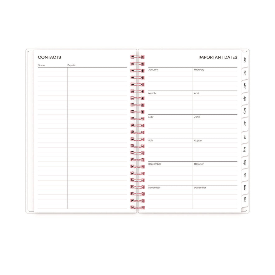 Rose gold twin-wire binding for easy page turning.