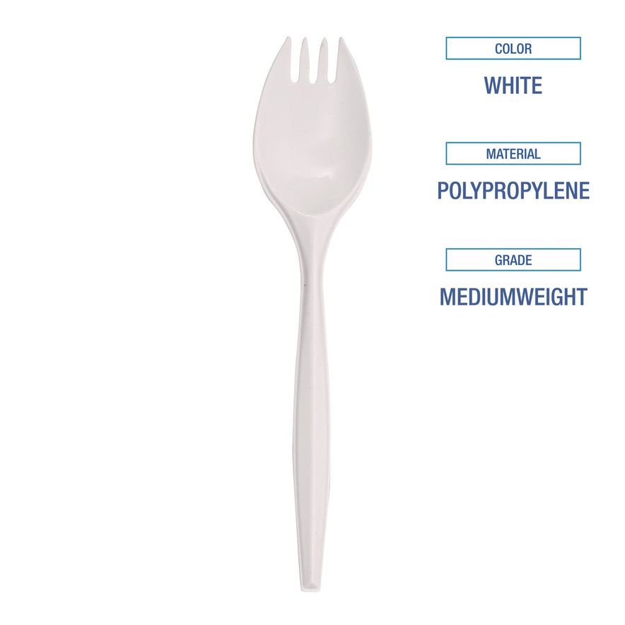 Boardwalk Mediumweight Polypropylene Cutlery, Spork, White, 1000/Carton