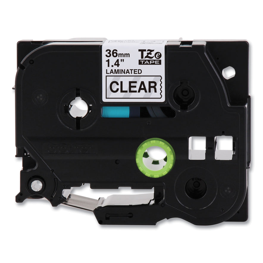 Perfect for labeling file folders and binders, name badges, and small signage. Laminated surface wipes clean. Withstands water, grease, grime, fading and abrasion. Label Size - text: 1.4 x 26.2 ft; Label Color(s): Clear; Machine Compatibility: Brother P-Touch CUBE XP, PT-P910BT, PT-3600, PT-530, PT-550, PT-9200DX, PT-9200PC, PT-9400, PT-9500PC, PT-9600, PT-9700PC, PT-9800PCN, PT-D800W, PT-E800W, PT-P900, PT-P900W, PT-P950NW; Catalog Description: P-Touch TZe-M65 White Print on Matte Clear Label Tape 36mm (1.4) wide x 8m (26.2') long.