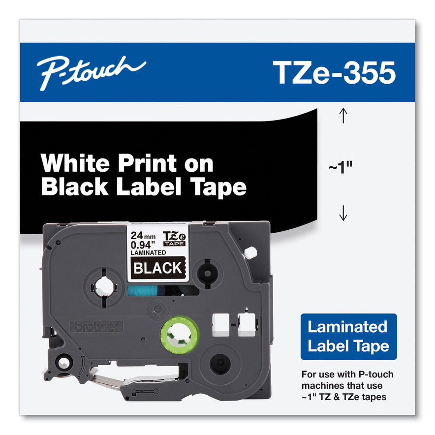 Brother TZe Standard Adhesive Laminated Labeling Tape, 0.94" x 26.2 ft, White on Black (TZE355)