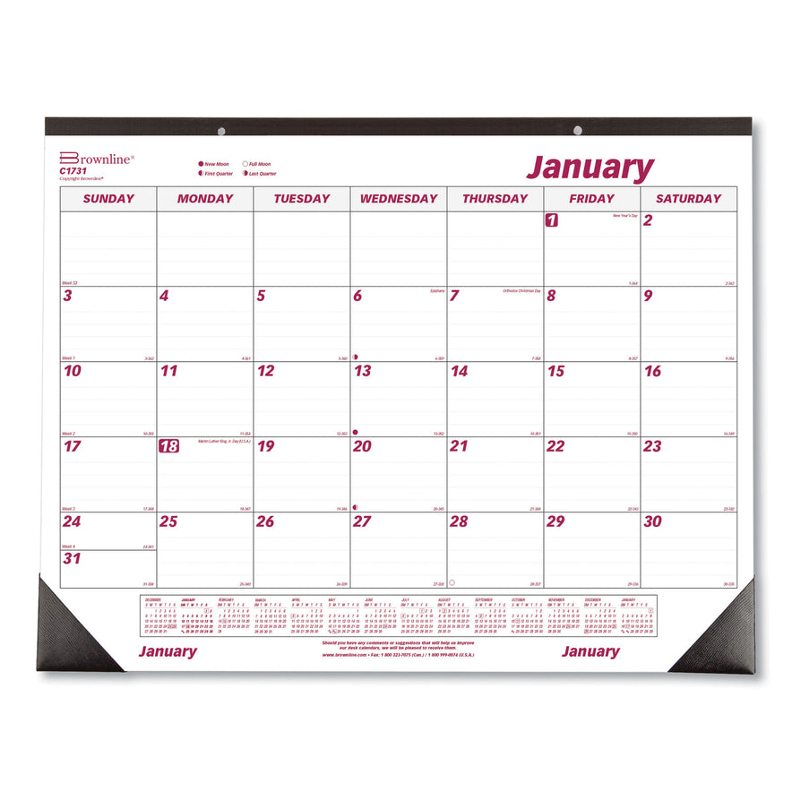 Brownline Monthly Desk Pad Calendar, 22 x 17, White/Burgundy Sheets, Black Binding, Black Corners, 12-Month (Jan to Dec): 2025 (C1731)