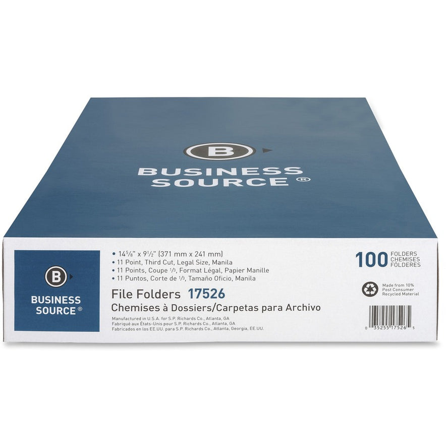 Business Source 1/3 Tab Cut Legal Recycled Top Tab File Folder (17526)