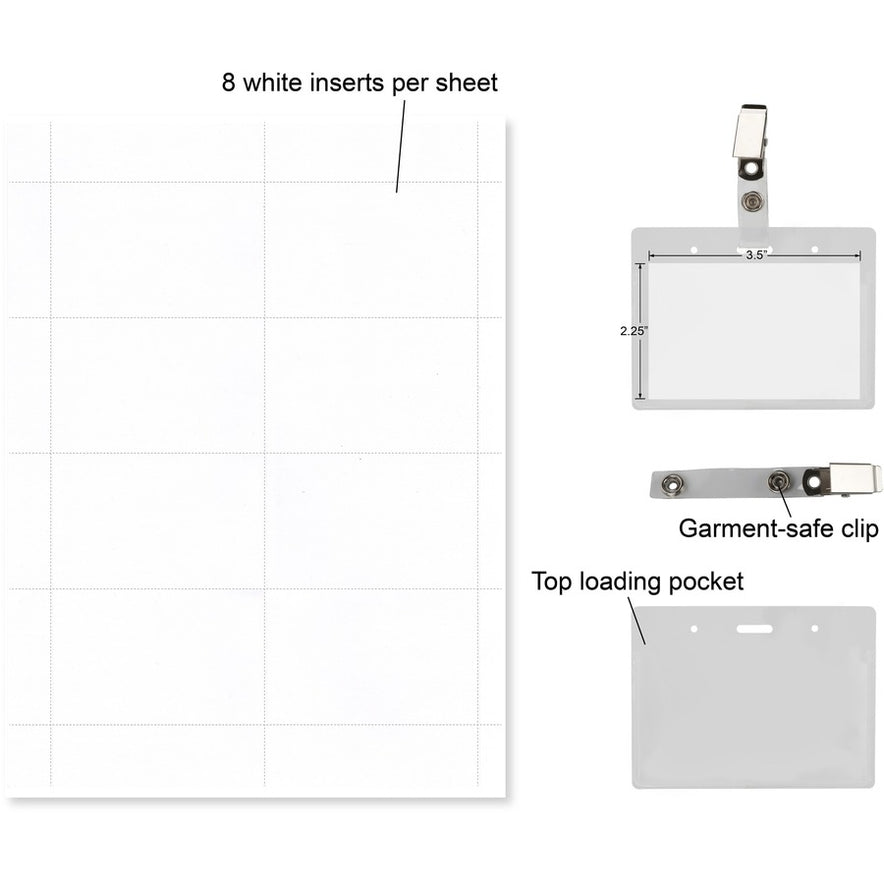 Deluxe Badge Holders feature a transparent design that completely showcases your insert for easy viewing. Garment-safe clips attach securely to clothing without any damage. White inserts can be easily exchanged for quick updates. Badge holders are perfect for conferences, meetings, events, guests and more.