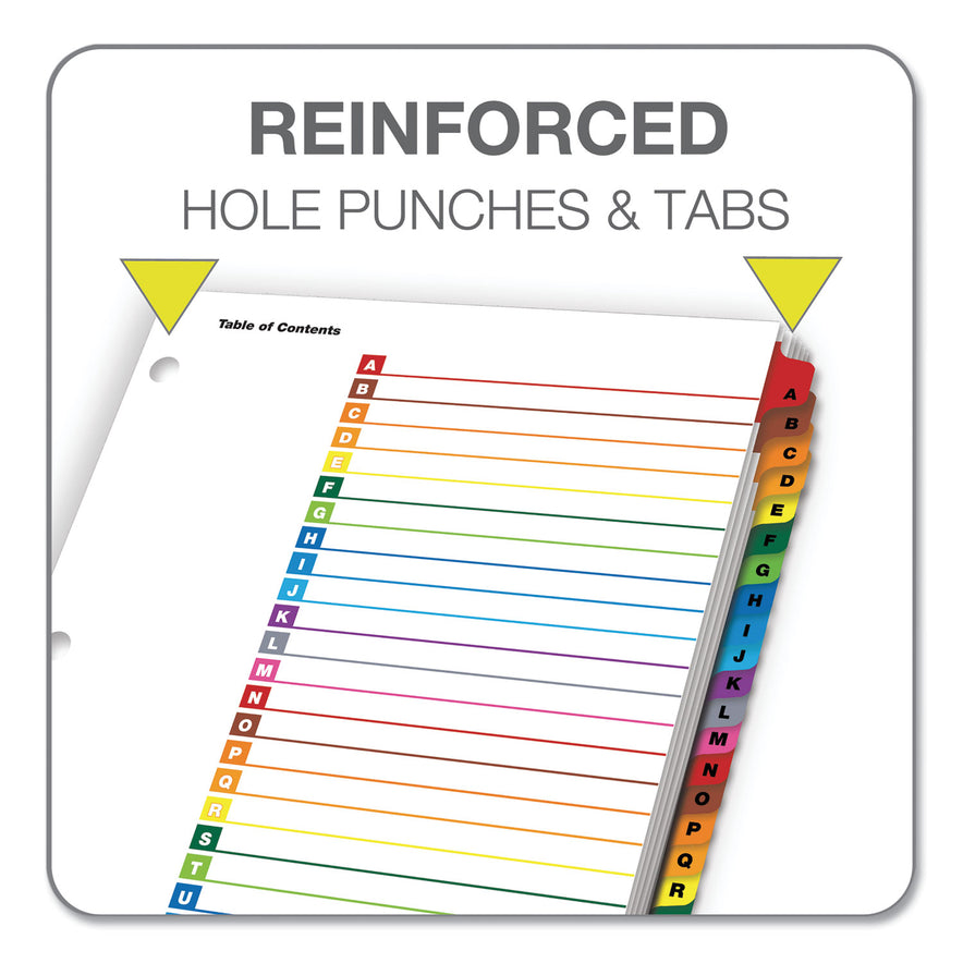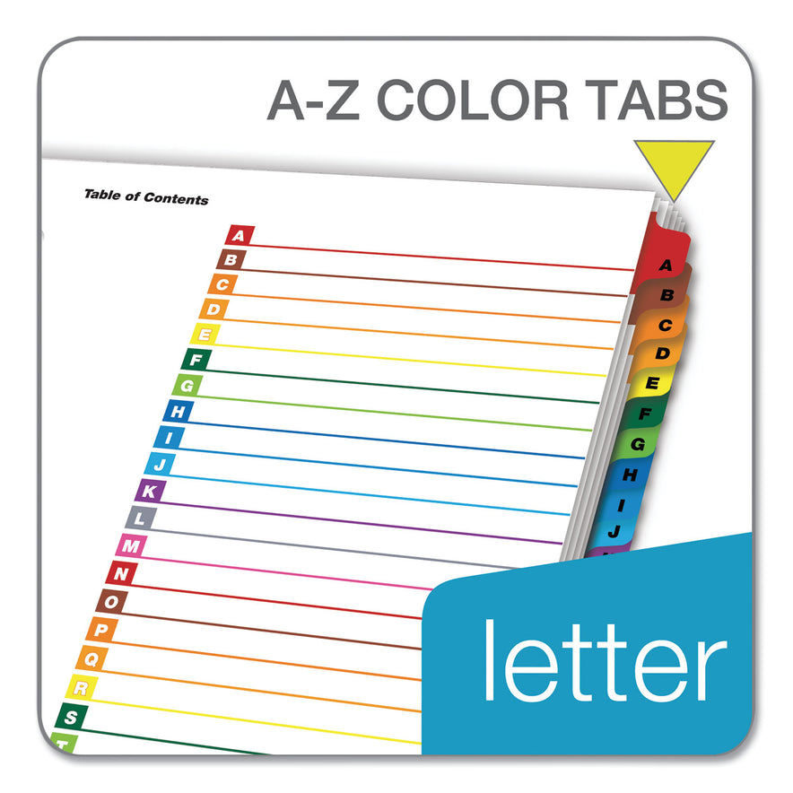 Cardinal OneStep Printable Table of Contents and Dividers, 26-Tab, A to Z, 11 x 8.5, White, Assorted Tabs, 1 Set (60218)