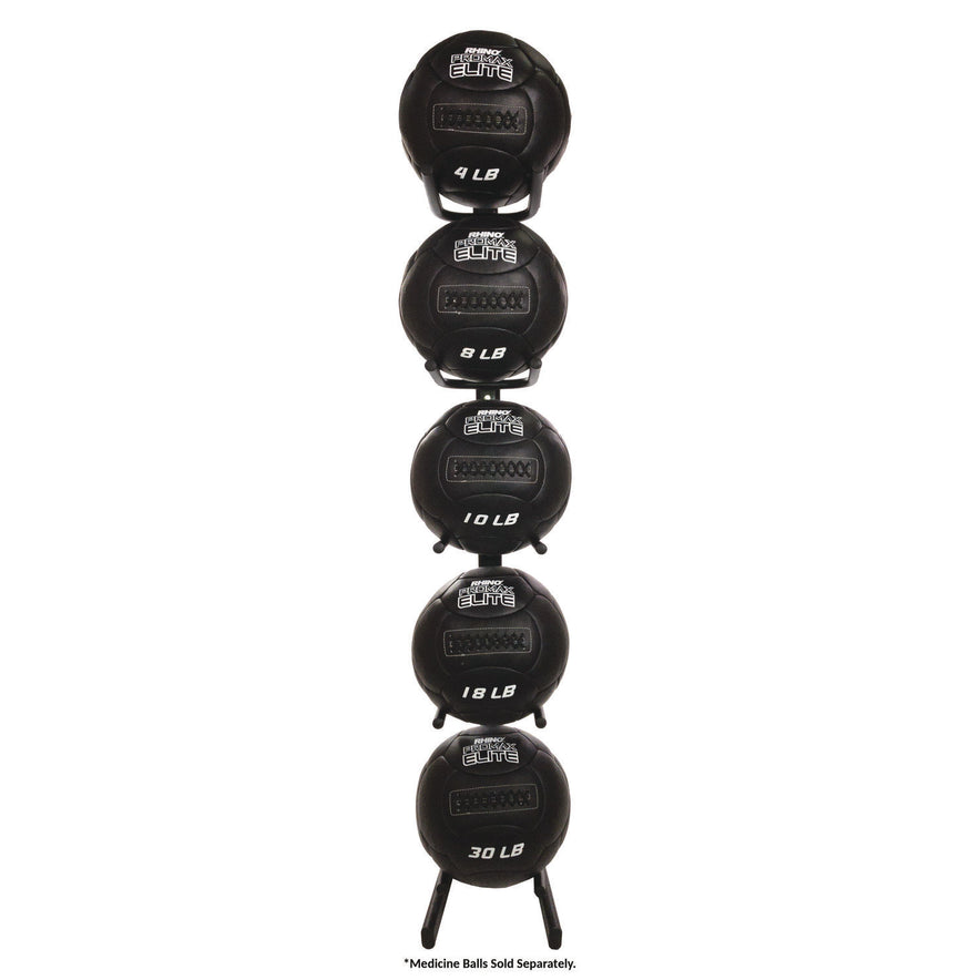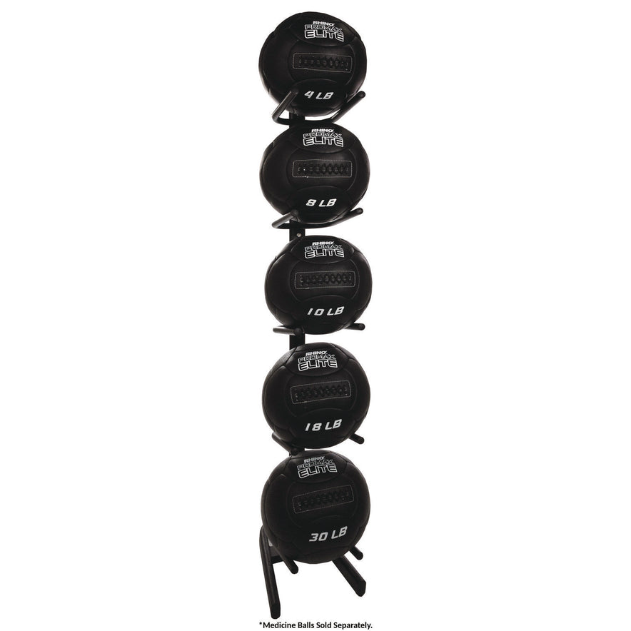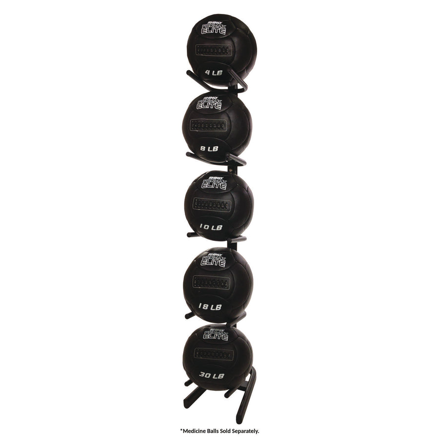 Rack can hold five soft medicine balls.