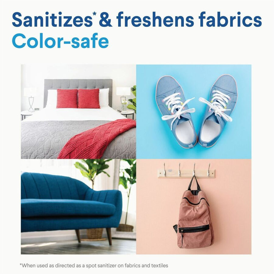 TO SPOT SANITIZE SOFT SURFACES**: Spray until surface is wet. Leave visibly wet for 5 min. Let air dry. **For use as a spot sanitizer on fabrics and textiles.