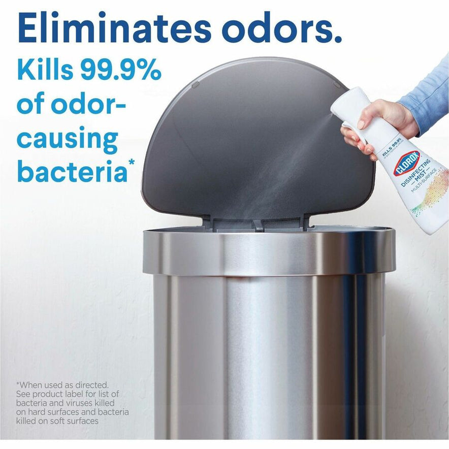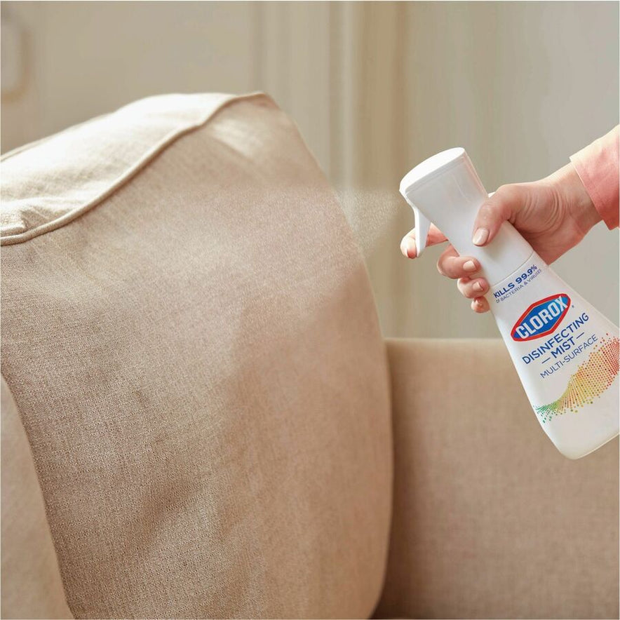 Disinfect hard surfaces, eliminate odors and sanitize fabrics with Clorox Disinfecting Mist. 3-in-1 design disinfects, deodorizes/refreshes fabric and kills 99.9 percent of bacteria and viruses, including SARS-CoV-2 on hard, nonporous surfaces. Help protect your home from the spread of germs during cold and flu season by spraying high-touch surfaces like doorknobs, countertops and faucets. Continuous sprayer creates a fine mist with a color-safe formula (when used as directed) to sanitize and refresh hard-to-wash fabrics in your home. Rinsing is required on incidental, food-contact surfaces. Reusable sprayer helps reduce waste.