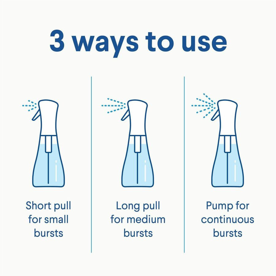 Use on hard and soft surfaces with even coverage thanks to continuous sprayer