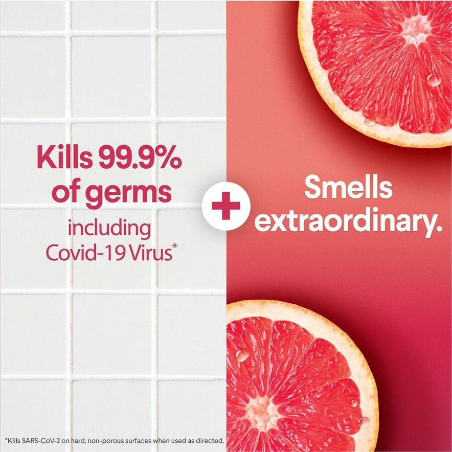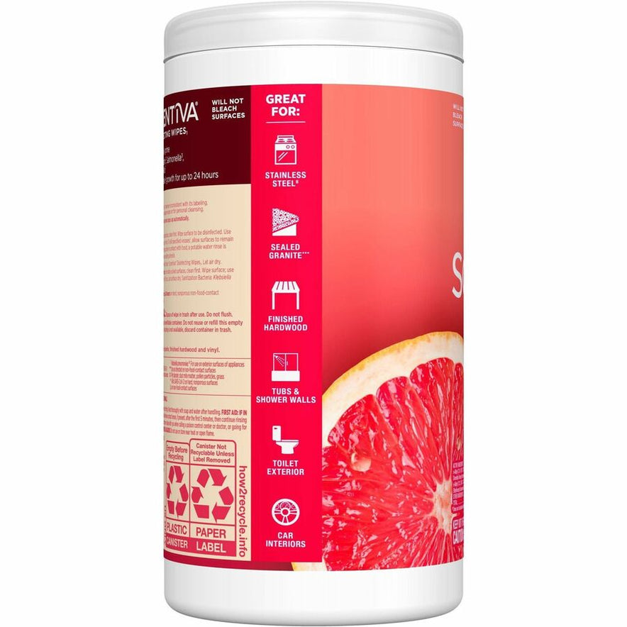 Clean and disinfect your home while enjoying the captivating, long-lasting scent of Tahitian Grapefruit Splash by using these bleach-free, all-in-one cleaning wipes. Clorox Scentiva Disinfecting Wipes kill 99.9 percent of viruses and bacteria, including the COVID-19 Virus, on hard, nonporous surfaces in 15 seconds with the power of Clorox clean (when used as directed). These multisurface cleaning wipes feature a clear-drying formula that powers through grease, soap scum and grime so you can tackle any surface with confidence. Clorox Scentiva Disinfecting Wipes even prevent odor-causing bacteria growth for up to 24 hours on nonfood-contact surfaces. Safely wipe down garbage cans, sinks, toys, remotes and appliances, or clean up car spills with these nonbleach sanitizing wipes. Disposable, antibacterial wipes in a convenient dispensing canister feature a Tahitian Grapefruit Splash scent to freshen your home and inspire the senses.