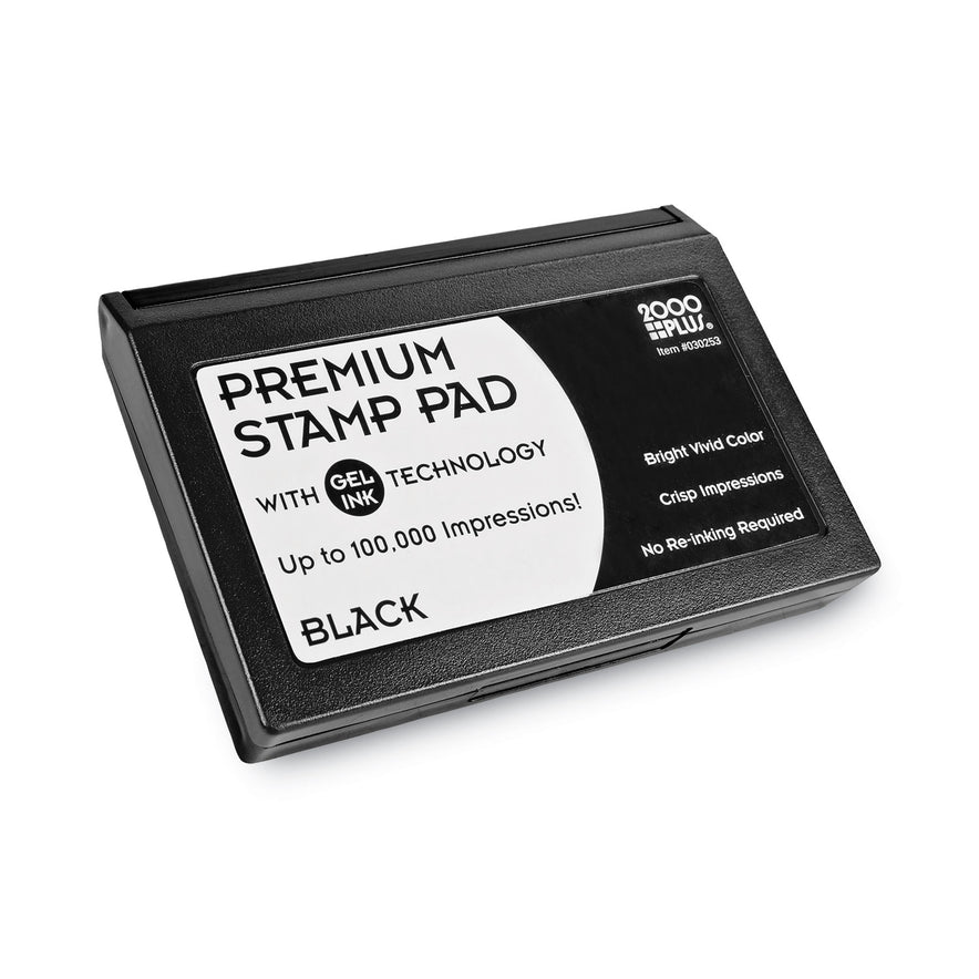 Premium microgel stamp pad provides up to 100,000 impressions without reinking. For use with 2000PLUS stamps. Stamp Pads Type: Inked Microgel; Ink Pad Type: Conventional Pad; Ink Color(s): Black; Size: 4.25" x 2.75".