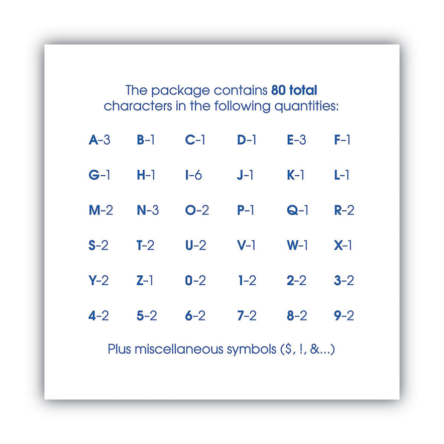 Easy to use--just peel and stick. Perfect for creating signs, project boards or denoting addresses. Adheres to paper, glass, metal, plastic and many other surfaces. Character Types: Numbers; Symbols; Uppercase Letters; Mounting Type: Adhesive; Character Color: Black; Material(s): Vinyl.