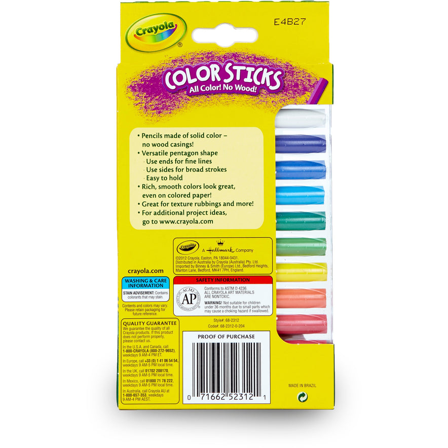Crayola 12 Color Sticks Woodless Colored Pencils (682312)