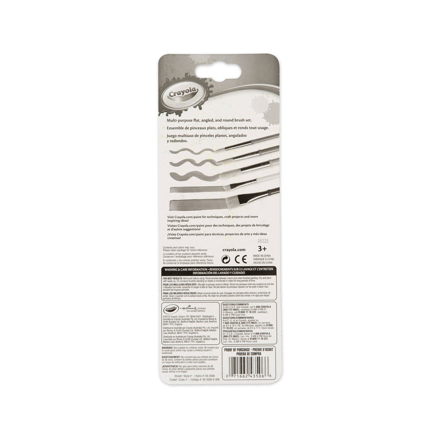 Crayola Arts and Craft Brush Set, Assorted Sizes, Natural Hair, Angled, Flat, Round, 5/Set (053506)