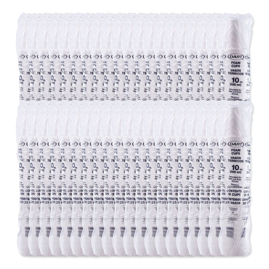 Dart Foam Drink Cups, 10 oz, White, 25/Bag, 40 Bags/Carton (10J10)